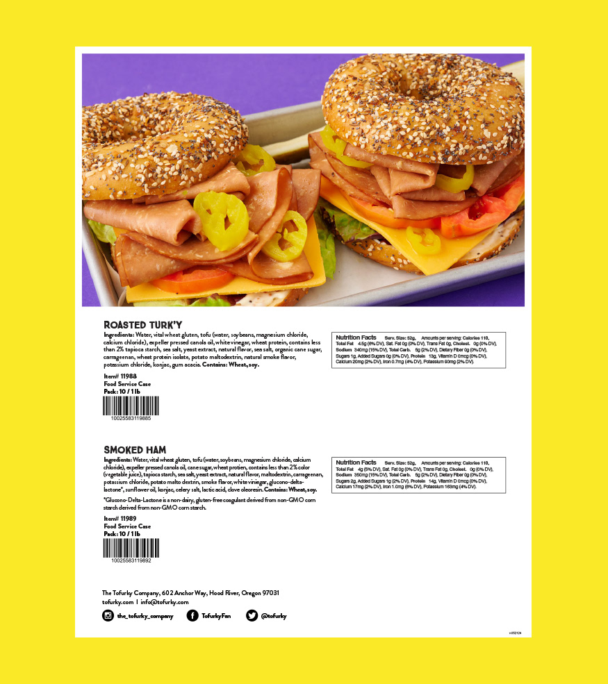 That’s why every detail matters. These marketing materials help to deliver consistent and brand forward touch points for every product Tofurky produces. For retail, for food service and for foreign markets, every product has necessary information that needs to be delivered. The visuals need to captivate, the copy must entice, and the content should deliver all the critical information to ensure readers walk away confident and ready to make their next purchase. When done right, these materials don’t just inform—they inspire action and reinforce trust in your product’s quality. Below is a selection of just a small fraction of all the marketing material I was able bring up to Tofurky's gold standard.