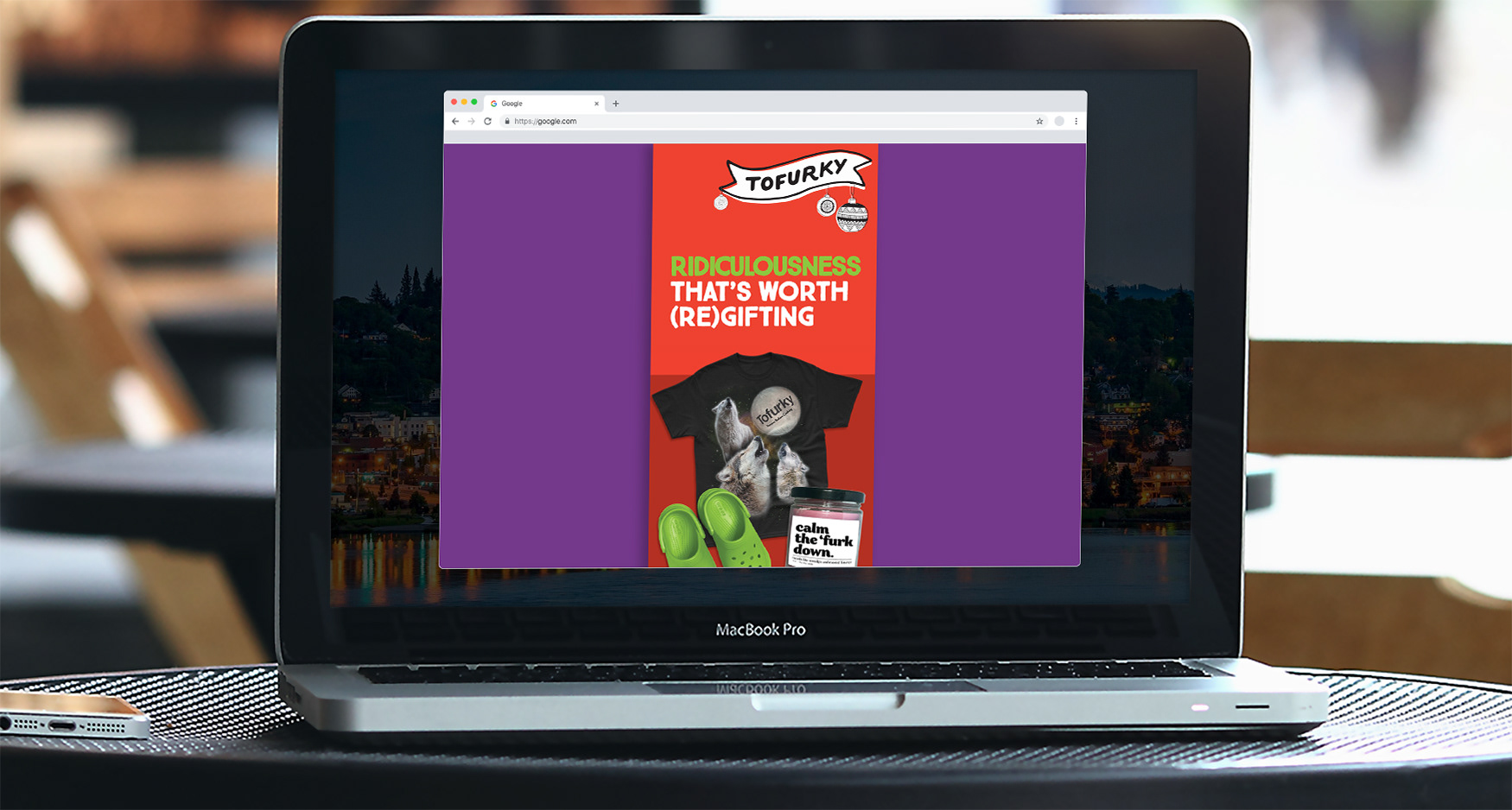One of Tofurky’s most memorable holiday campaigns embraced the lighthearted chaos of white elephant gift exchanges (or “Yankee Swap” for my East Coast friends).